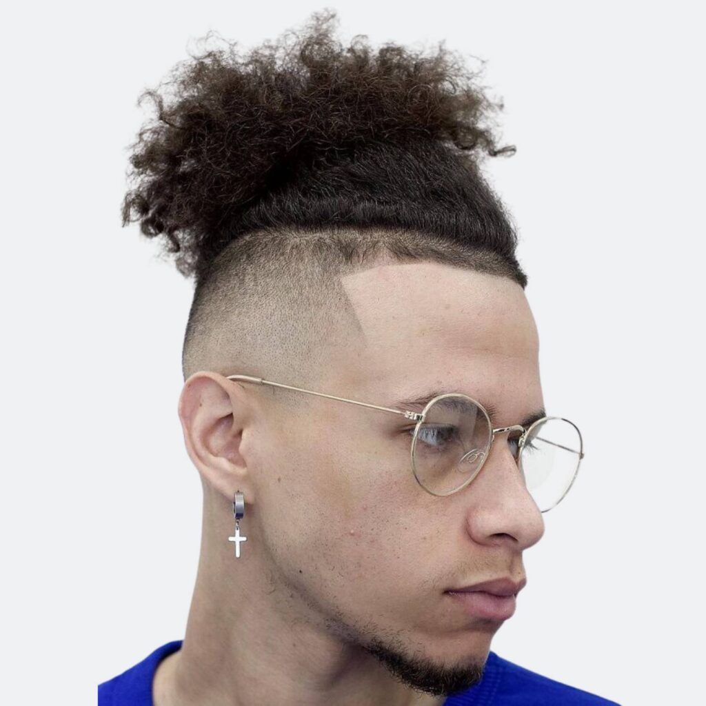 This style is a long ponytail with a low fade haircut. The contrast between the ponytail’s length and the faded sides creates a modern, edgy look.